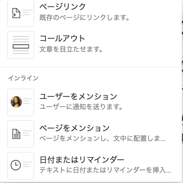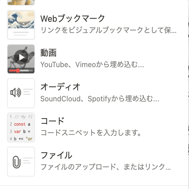 ・WebページのURL(遷移先ページをそのままnotion上に表示可能!)